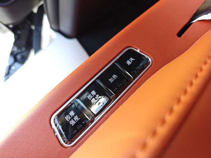 坐进第二排,座椅通风加热按摩功能一个不落,还有无级腿托调节、十二档扶手调节和迎宾调节等功能,给乘客商务级的坐乘体验。