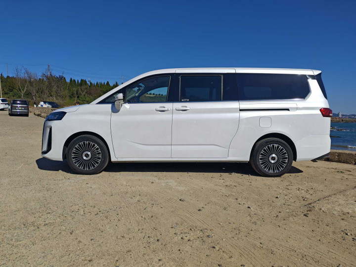 来到车侧,多条幅的轮毂绝对是最吸引人眼球的点,5317mm长的车身和3200mm的轴距也让人眼前一亮,对内部空间充满期待。